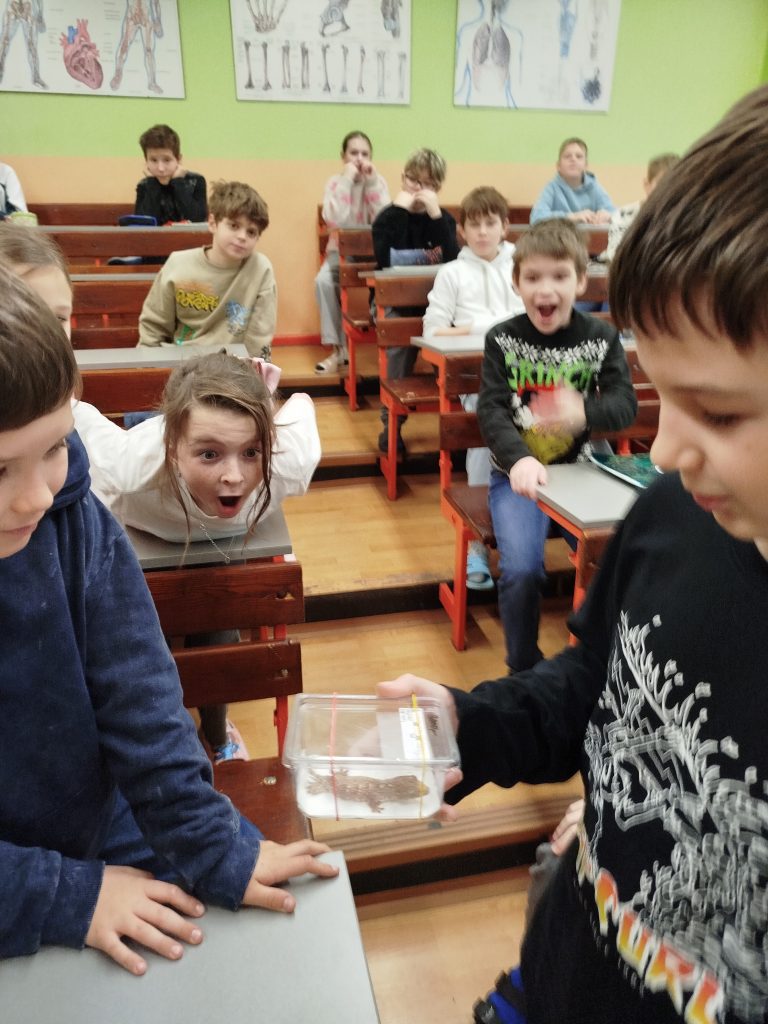 Žiak priniesol do triedy živé plazy, čo okamžite vzbudilo veľký záujem. Spolužiakom porozprával, ako tieto živočíchy žijú, čím sa živia. Dozvedeli sme sa napríklad, aké zásady treba dodržiavať pri ich chove doma.